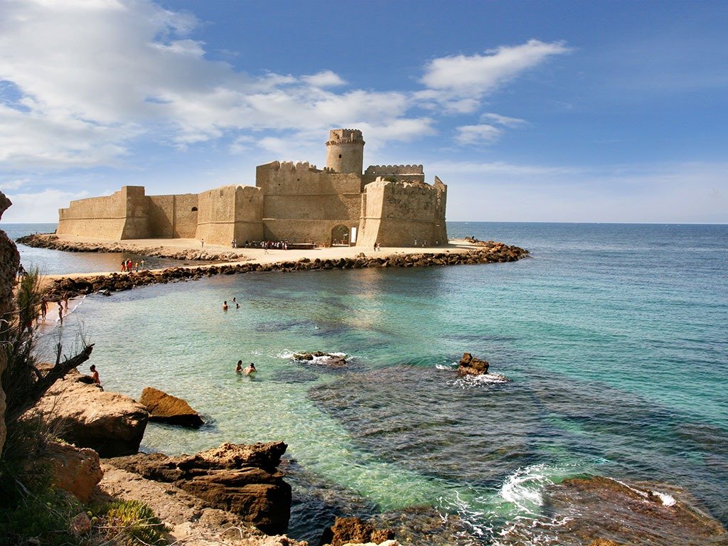 Le Castella: Situata sulla costa ionica della Calabria, a 10 km da Isola Capo Rizzuto, domina la baia con l’antica fortezza aragonese che si colloca in un contesto ambientale di elevato pregio naturalistico. In una delle stanze della fortezza è possibile osservare i fondali dell’area marina, nota sia per il valore paesaggistico e ambientale sia per la ricchezza di risorse culturali e archeologiche.